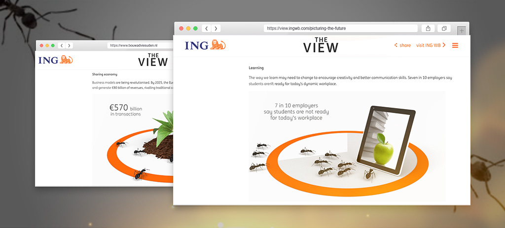 Connaxis produced an animated infographic story for ING Wholesale Banking based on a creative concept developed by an art director for their global online publication "The View". The result represents the effect of demographic change on the workplace, education, society, economy and companies showcased the challenges each face.